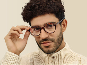 The Khalid eyeglasses combine amber tortoise with a vintage-inspired round frame, creating an inviting and expressive style. Ideal for creative spirits and casual weekend looks, this pair adds charm without effort.