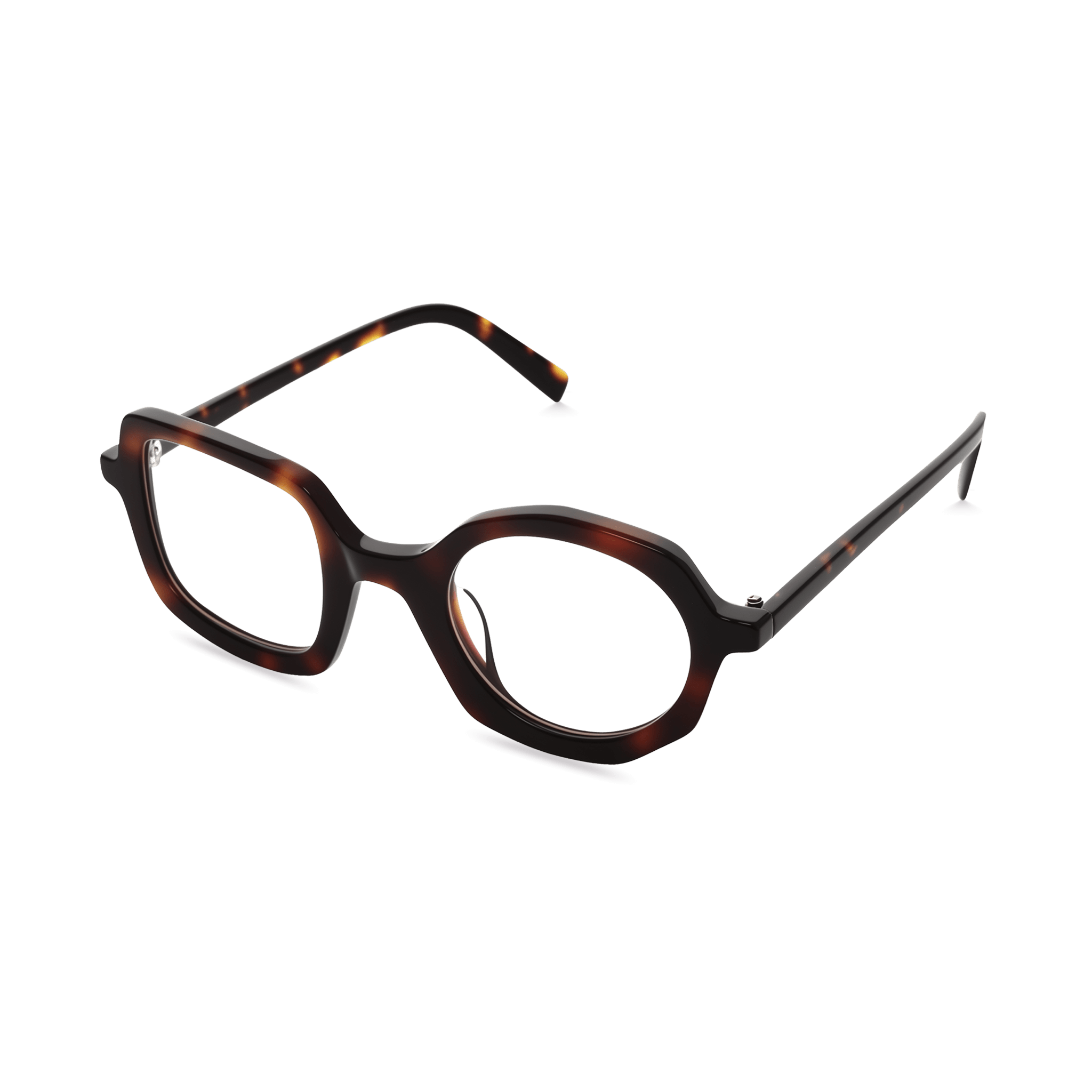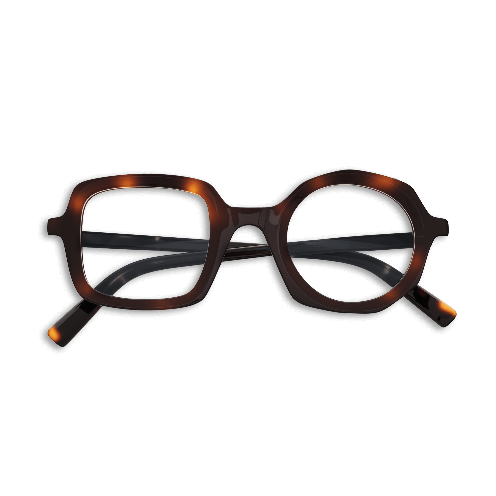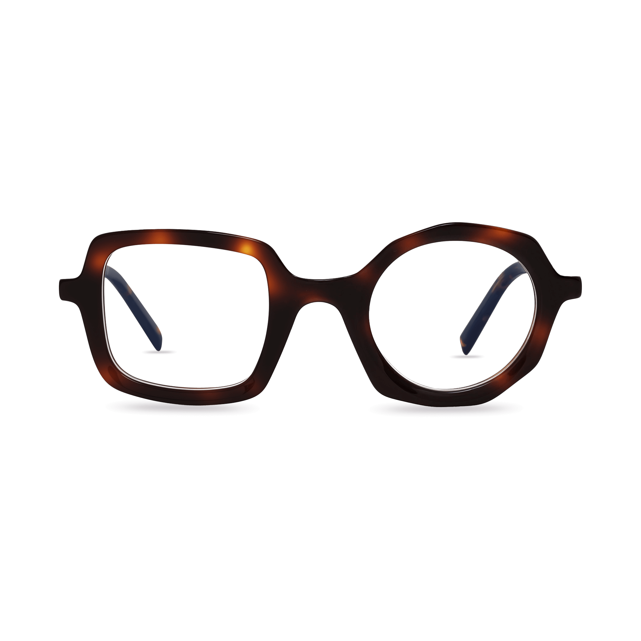 Classic tortoise coloring meets Bellamy’s inventive design, where one lens sits in a square frame and the other in a round. This blend of tradition and creativity makes it versatile for work or leisure.