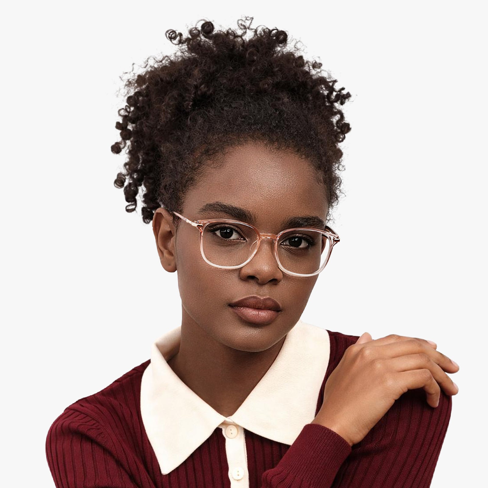 Cali clear pink brown white rose gold frames feature a square shape softened by gentle curves, creating a balanced, approachable look. Rose gold accents add a subtle touch of elegance, perfect for anyone who wants stylish and comfortable everyday wear.