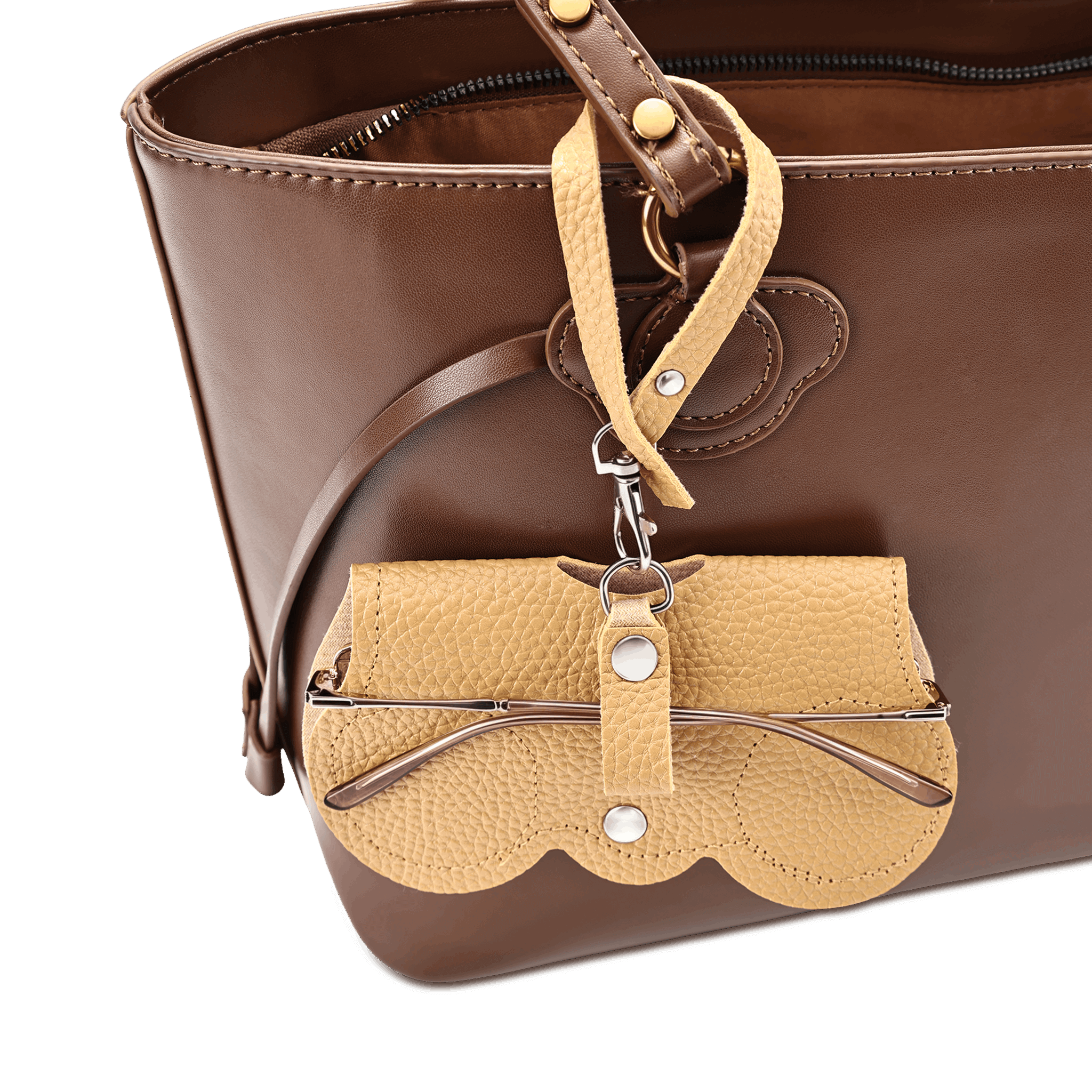 A warm mustard tone gives this eyeglass case clip a softer, more classic feel while maintaining simple functionality. Easy to attach and comfortable to wear, it keeps your frames close without interrupting your outfit. Ideal for those who prefer subtle accessories.
