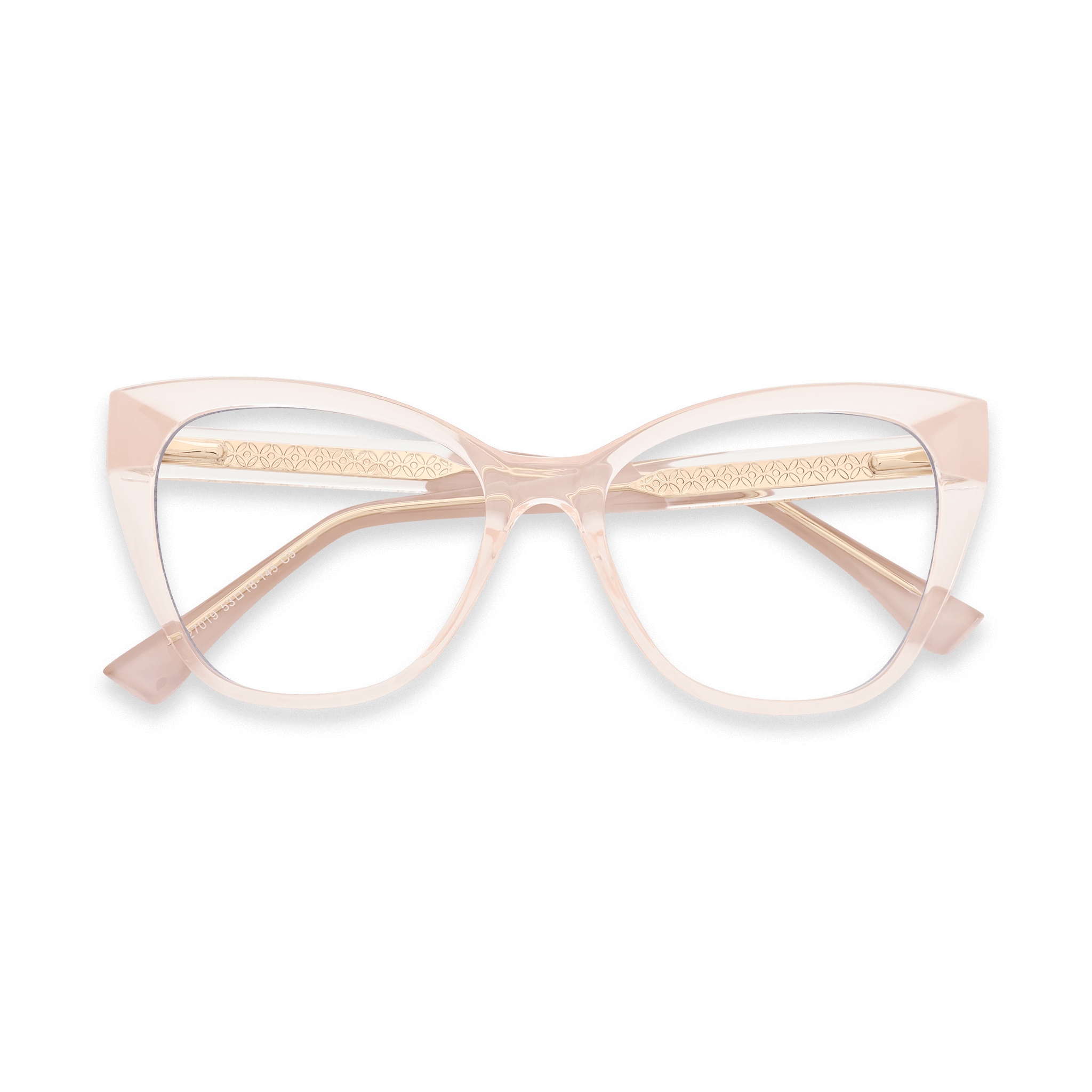 Soft color meets strong design in the Fatima light pink frame. The gentle hue contrasts beautifully with the defined cat-eye shape, delivering a look that feels feminine yet powerful—ideal for women who enjoy refined eyewear with personality.