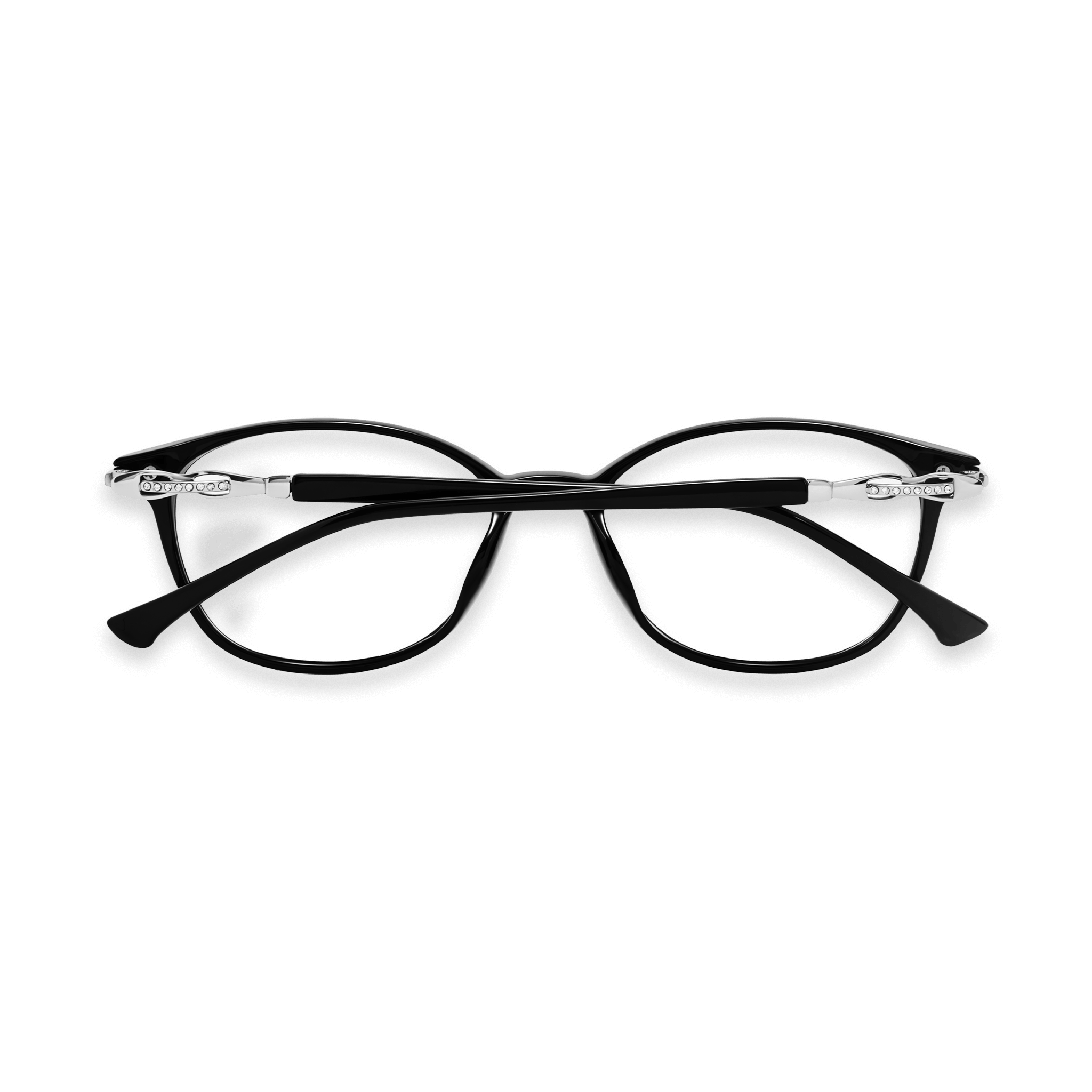 Jax black features a sleek rounded-square silhouette in a classic black finish. Clean lines and subtle metal accents create a modern, versatile look, while its lightweight construction ensures comfortable wear from work to weekend styling.