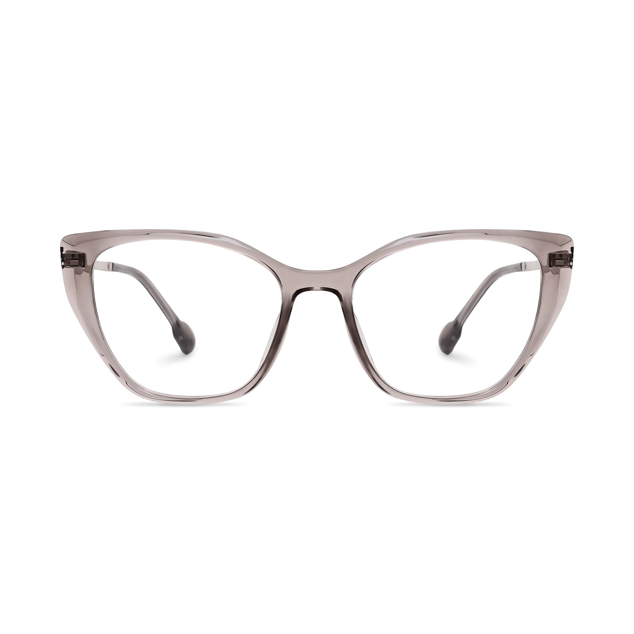 Light and airy, the Lina clear light grey pink frame offers a gentle color wash that complements the lifted cat-eye silhouette. Silver accents add clarity and balance, resulting in a refined look that suits both casual and polished settings.