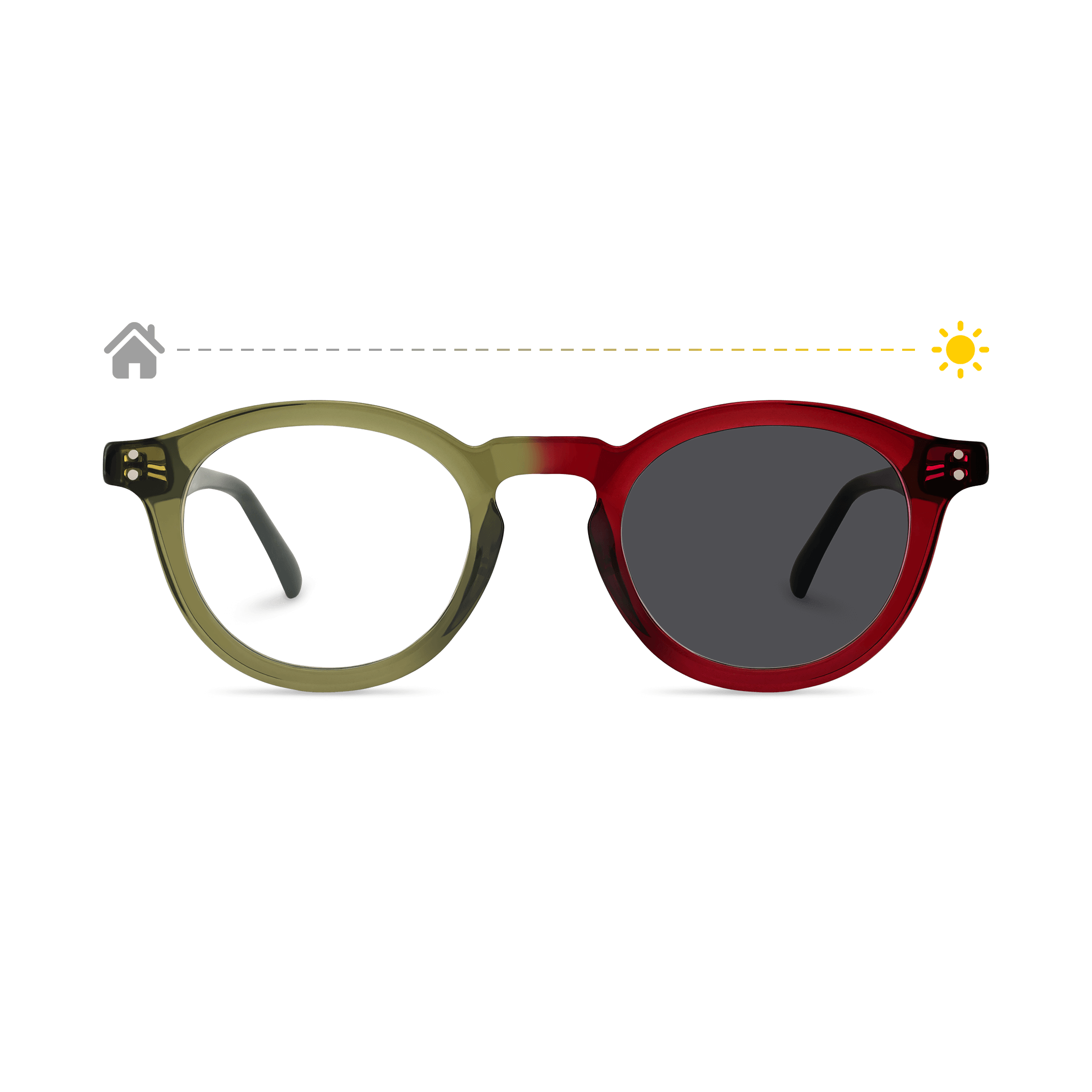 Round Photochromic Light Green to Rosered Frame And Clear To Grey Lenses