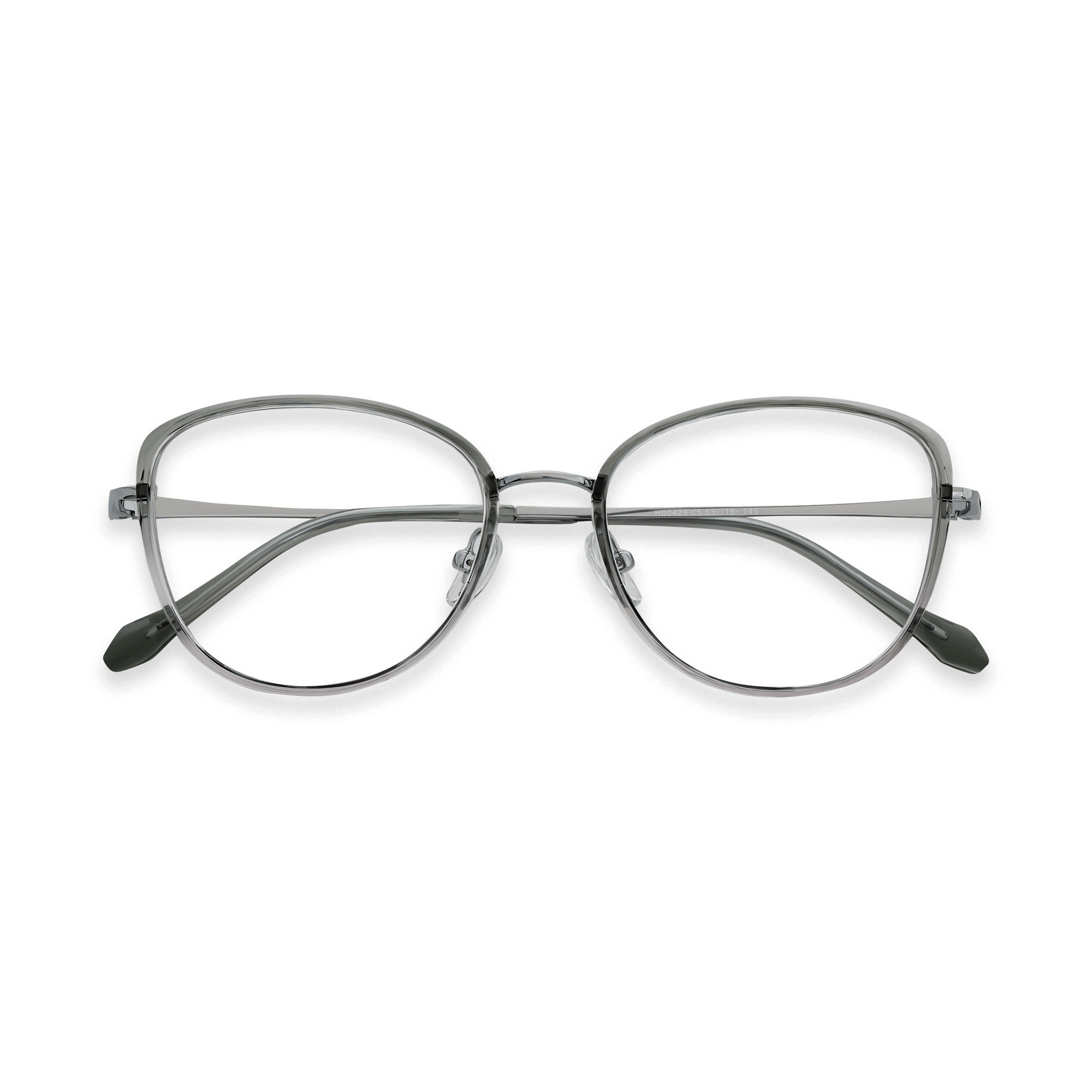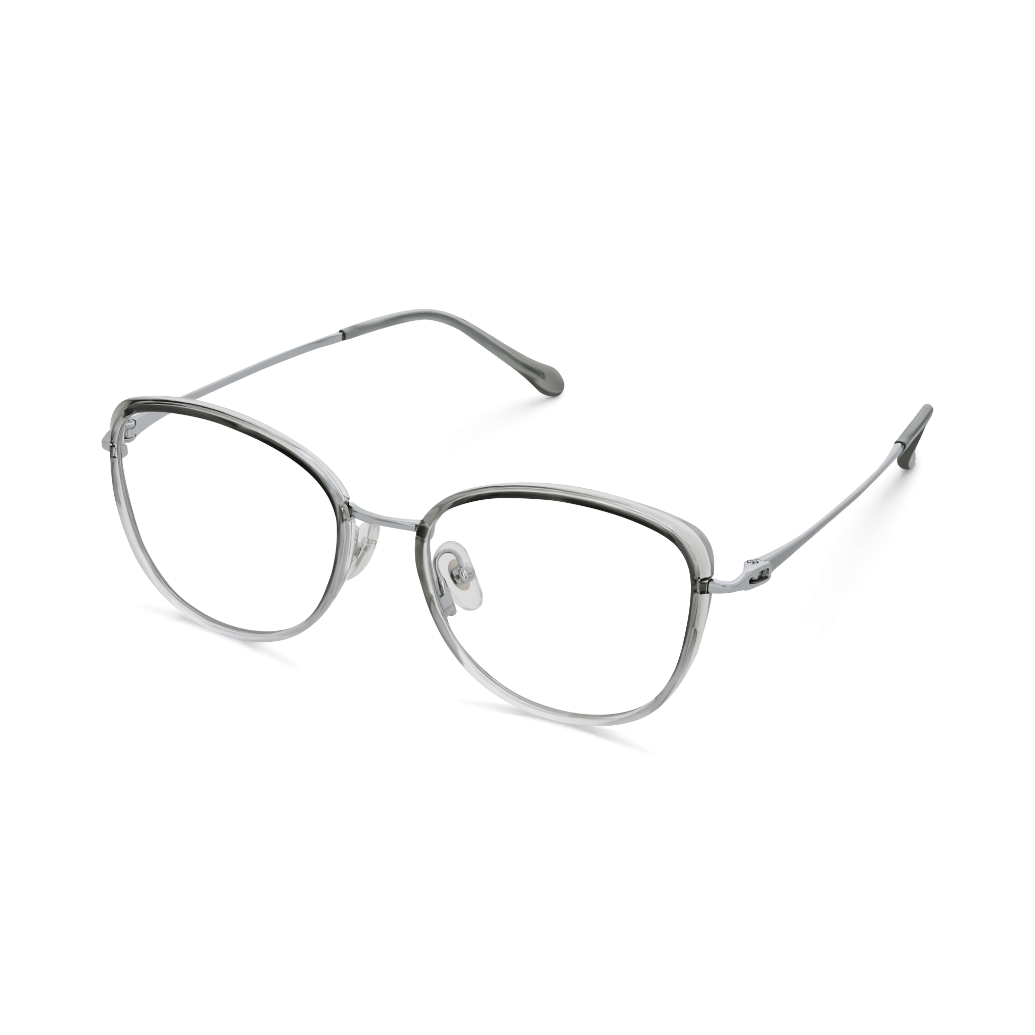 Step into contemporary style with Luciana gradient grey green cat-eye frames. The smooth color transition and polished chrome details add depth and character, ideal for individuals who enjoy modern, fashion-forward eyewear with subtle sophistication.