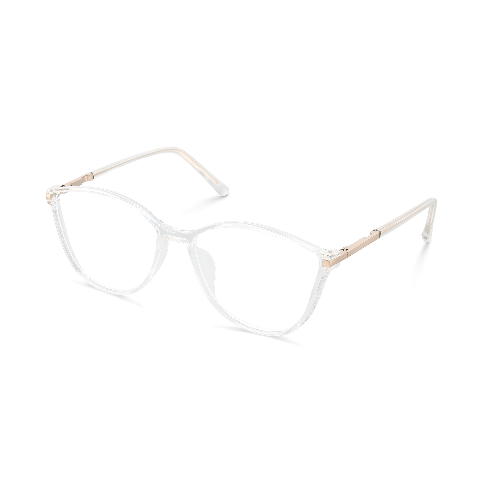 Crystal clear transparency defines this Nyla frame, highlighting its smooth cat-eye silhouette with a clean, modern edge. Lightweight and minimal, it adapts easily to any style or occasion.