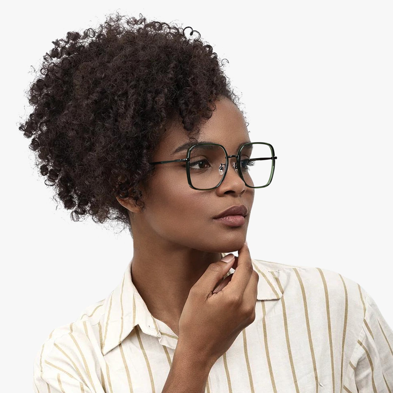Offering subtle depth and contrast, Ruth black dark green feels calm and minimal from the front, while the dark green undertone adds character up close. A quiet statement frame for those who appreciate detail that reveals itself slowly.